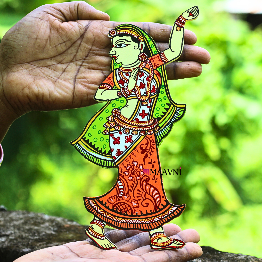 Bring home the timeless beauty of authentic Pattachitra art with this decor depicting Dancing Lady Orange & Green Cutout. Handcrafted in Odisha by master artisans from Maavni, each brushstroke celebrates India’s traditional temple art and transforms your space with cultural warmth and spiritual calm. This hand-painted art piece blends heritage storytelling with refined decor appeal—crafted to be admired for years.