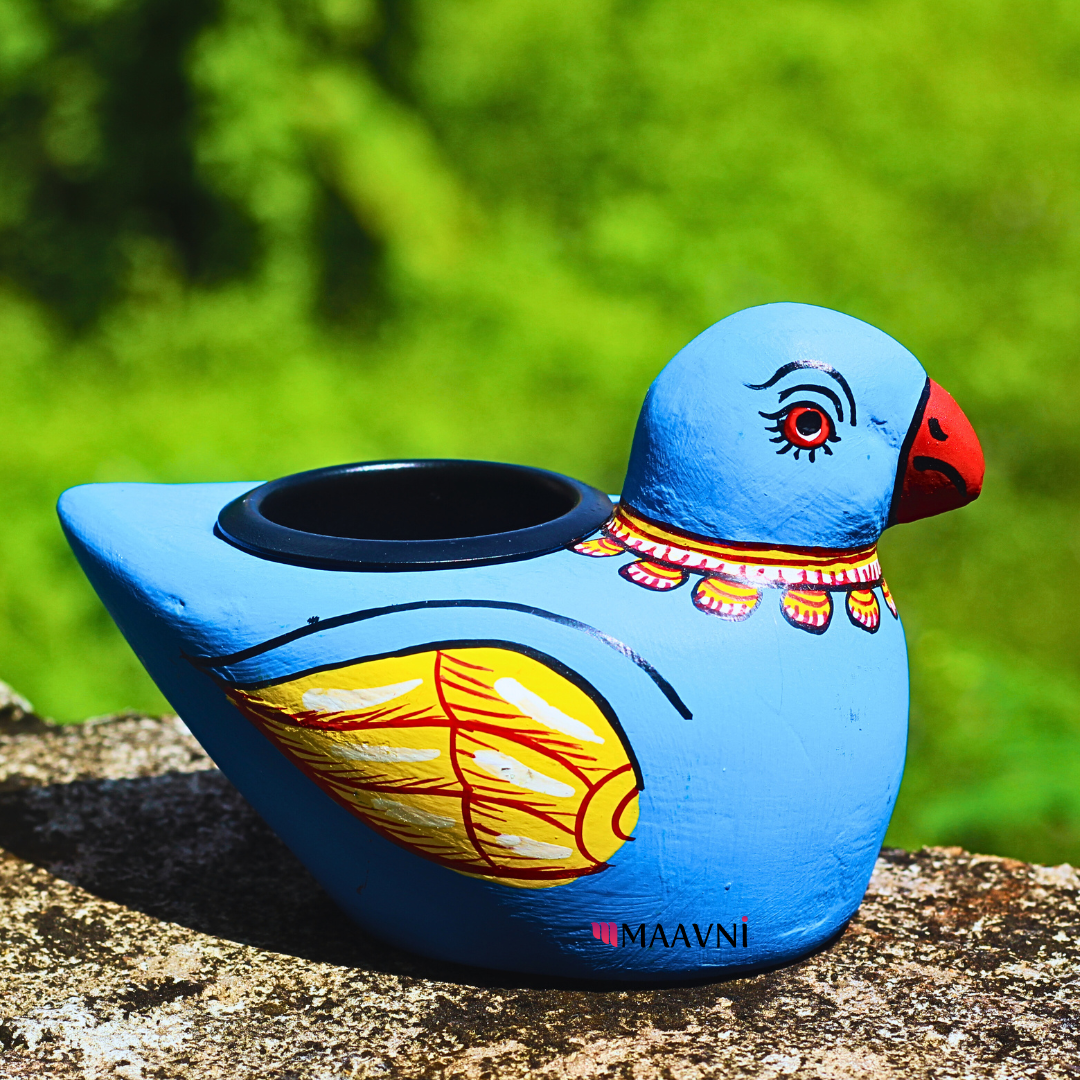 Hand-Painted Paper Mache Blue Parrot T-Light Holder