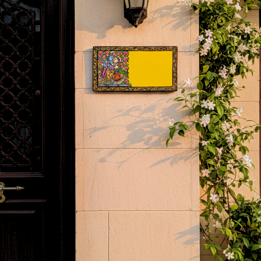 Handcrafted Radha Krishna Pattachitra Plywood Nameplate