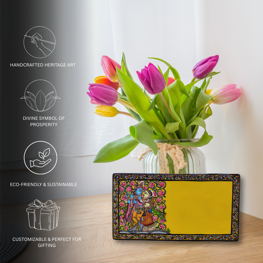 Celebrate divine love and artistry with our Handcrafted Radha Krishna Pattachitra Plywood Nameplate, a perfect blend of tradition, devotion, and craftsmanship.